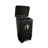 Fabricación en plástico rotomoldeado, con eje metálico. Tapa rebatible accionada a pedal metálico reforzado. Ideal para uso continuo. Disponible en varios colores para codificación sanitaria. Ideal para cocinas, baños y centros de salud.