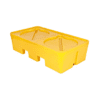 Pallet antiderrame perforado con base de apoyo desmontable para bidones, baldes, latas, etc. Fabricado en polietileno rotomoldeado. Apto para la intemperie.